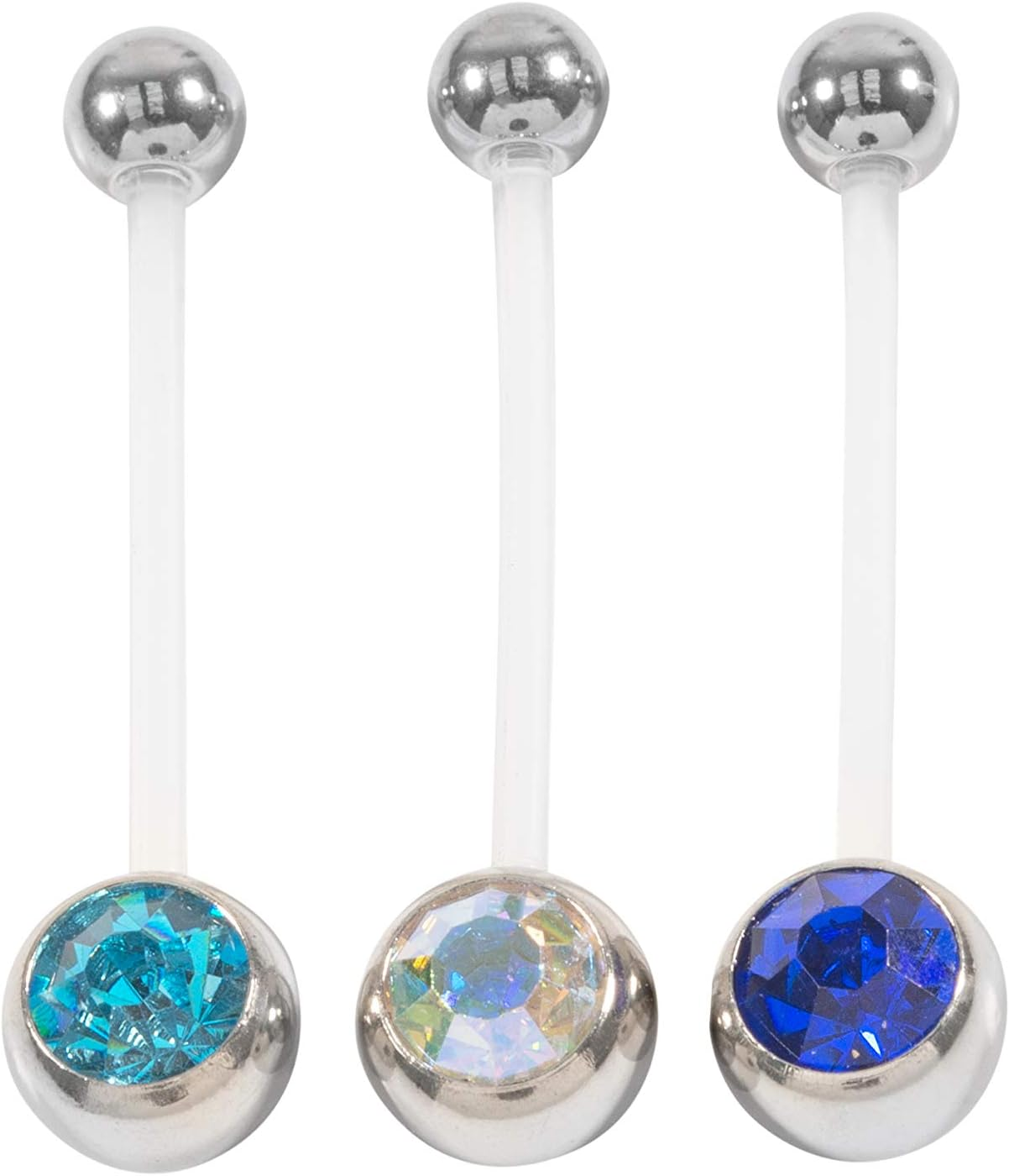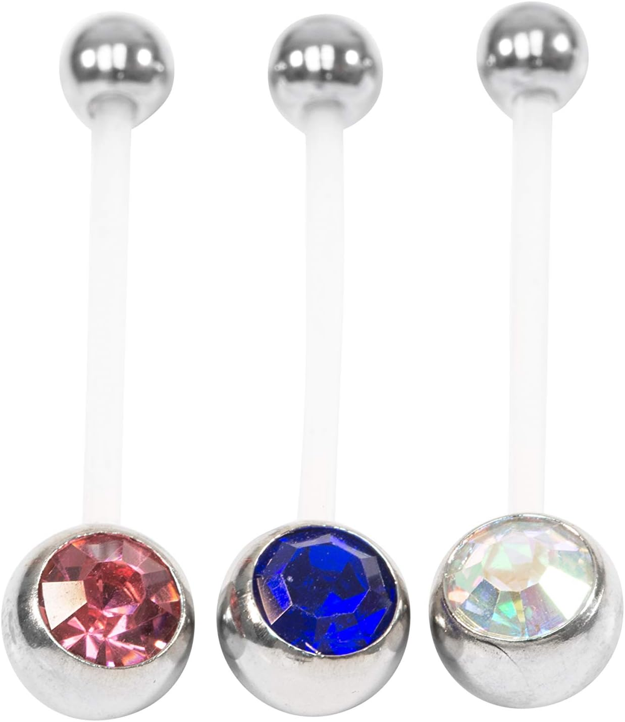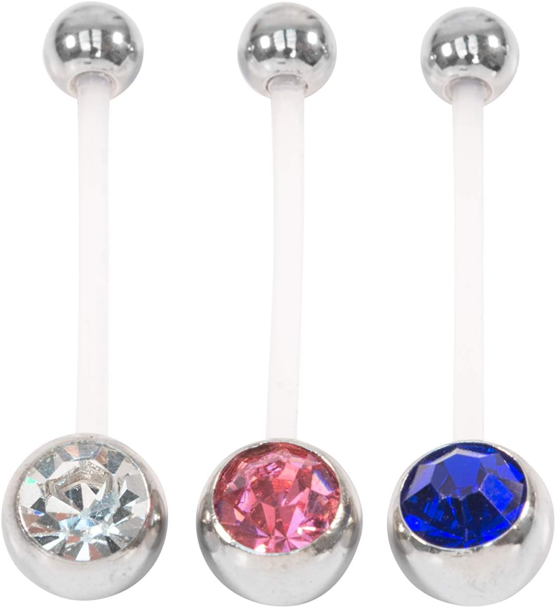 Belly Button Bars and Pregnancy Belly Bar 14G 10mm Belly Button Piercing Flexible Plastic Maternity Belly Bar Silver Surgical Steel Rhinestone Belly Piercing Jewelry