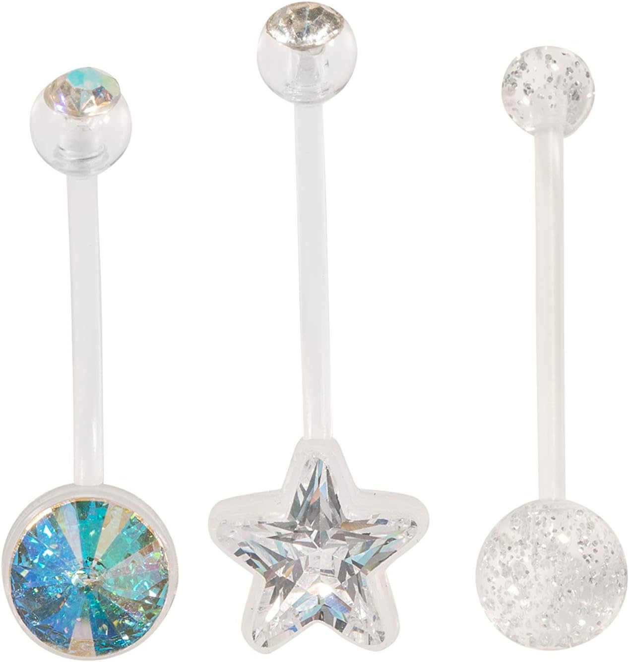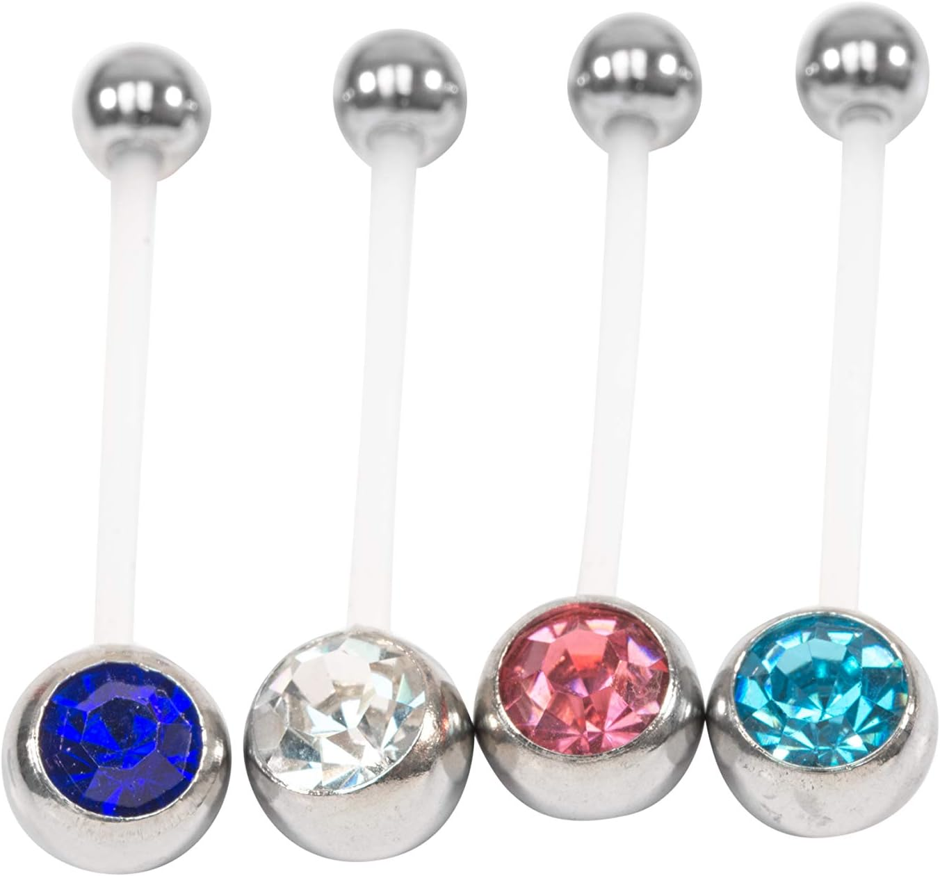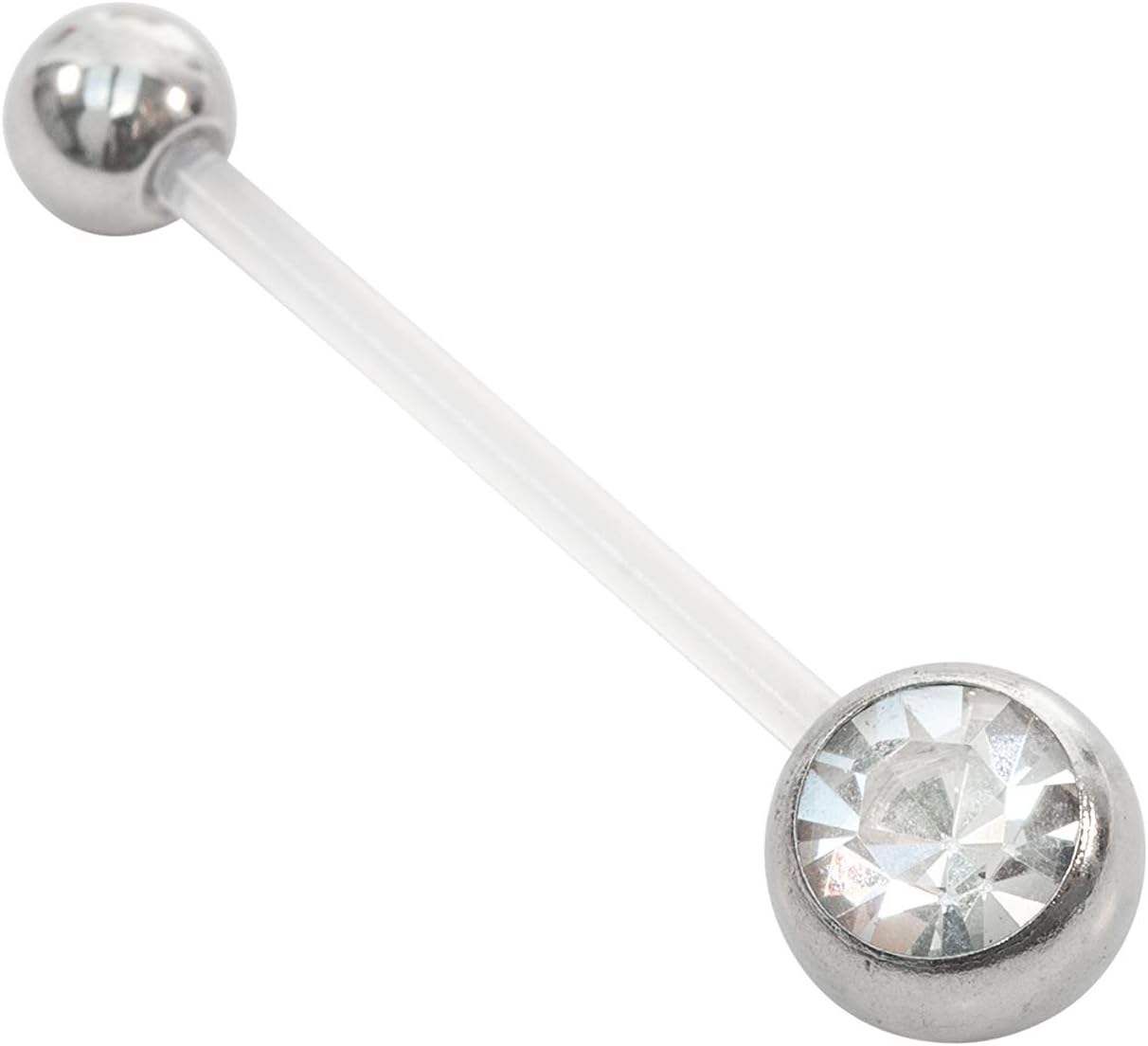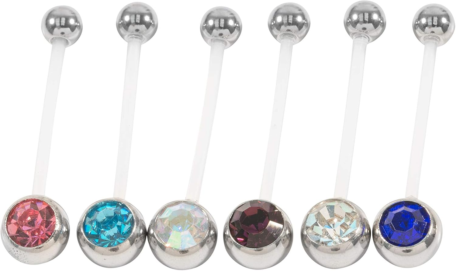 Belly Button Bars and Pregnancy Belly Bar 14G 10mm Belly Button Piercing Flexible Plastic Maternity Belly Bar Silver Surgical Steel Rhinestone Belly Piercing Jewelry