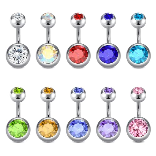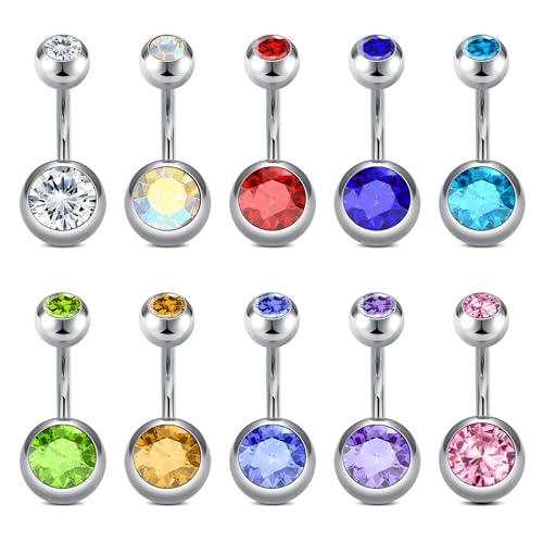 FECTAS Belly Button Bars 10mm Silver Surgical Steel and Clear Plastic Pregnancy Belly Bar Hypoallergenic Maternity Belly Ring Stainless Steel Short Long Belly Piercing Jewelry