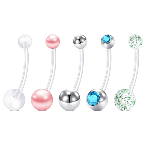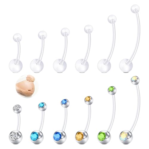 6-38mm Belly Button Bars and Pregnancy Belly Bar 14G Silver Belly Button Piercing Flexible Plastic Maternity Belly Bar Surgical Steel Rhinestone Belly Piercing Jewelry