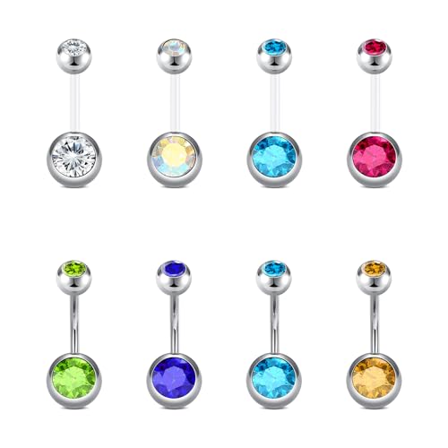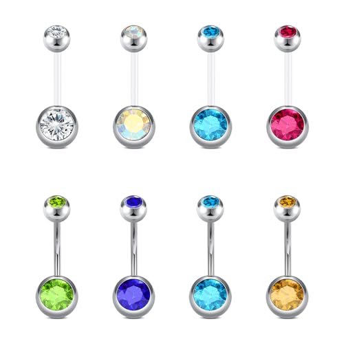 FECTAS Belly Button Bars 8mm Silver Surgical Steel and Clear Plastic Pregnancy Belly Bar Hypoallergenic Maternity Belly Ring Stainless Steel Short Long Belly Piercing Jewelry