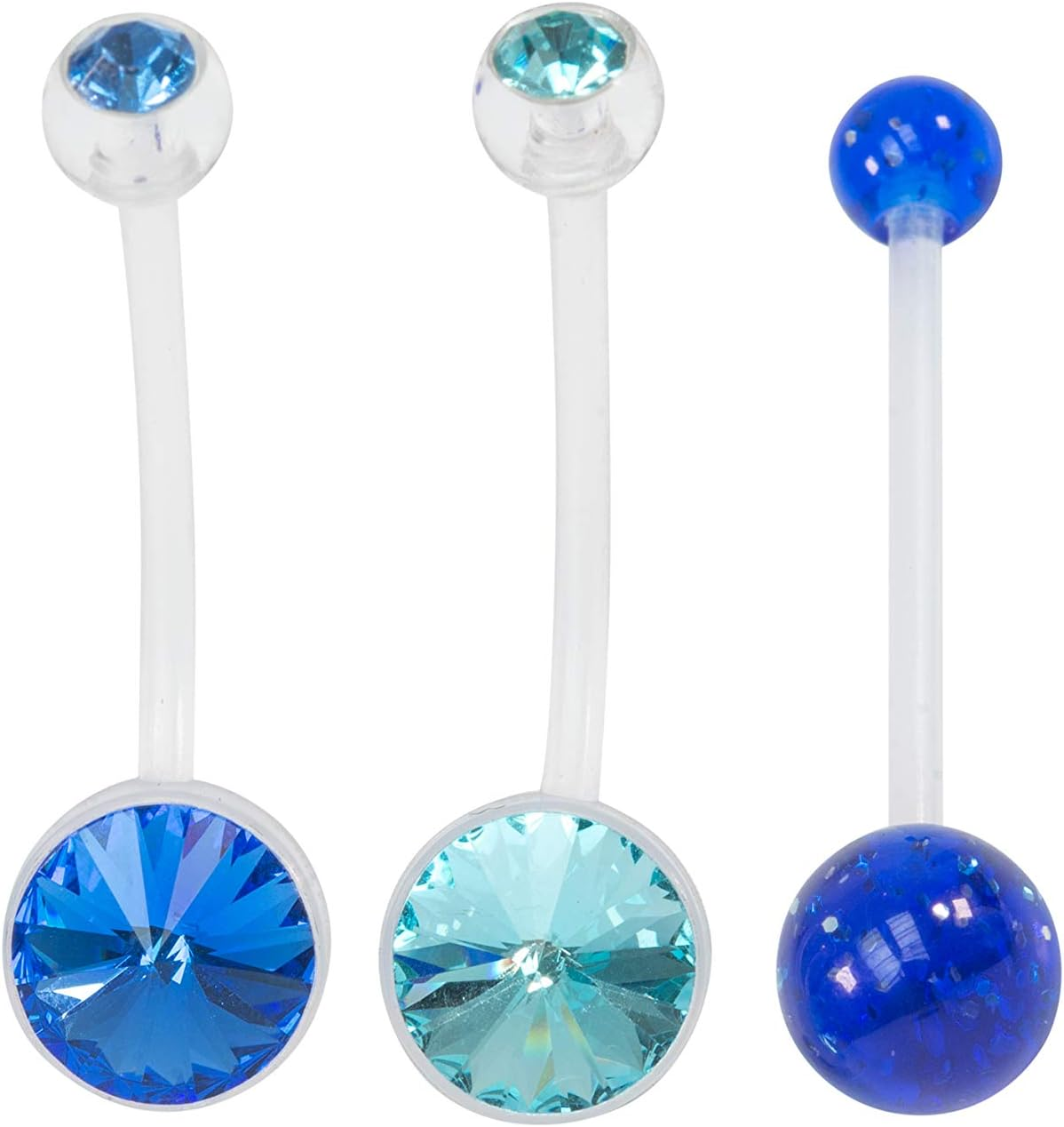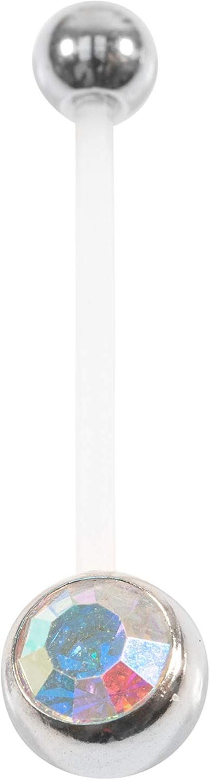 Single Jewel Crystal Pregnancy Maternity Belly Navel Bar Bioflex/Plastic Flexibl