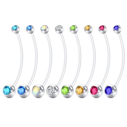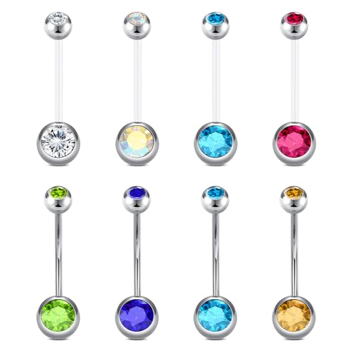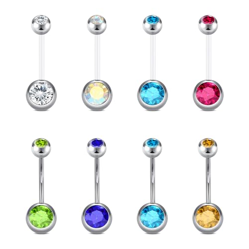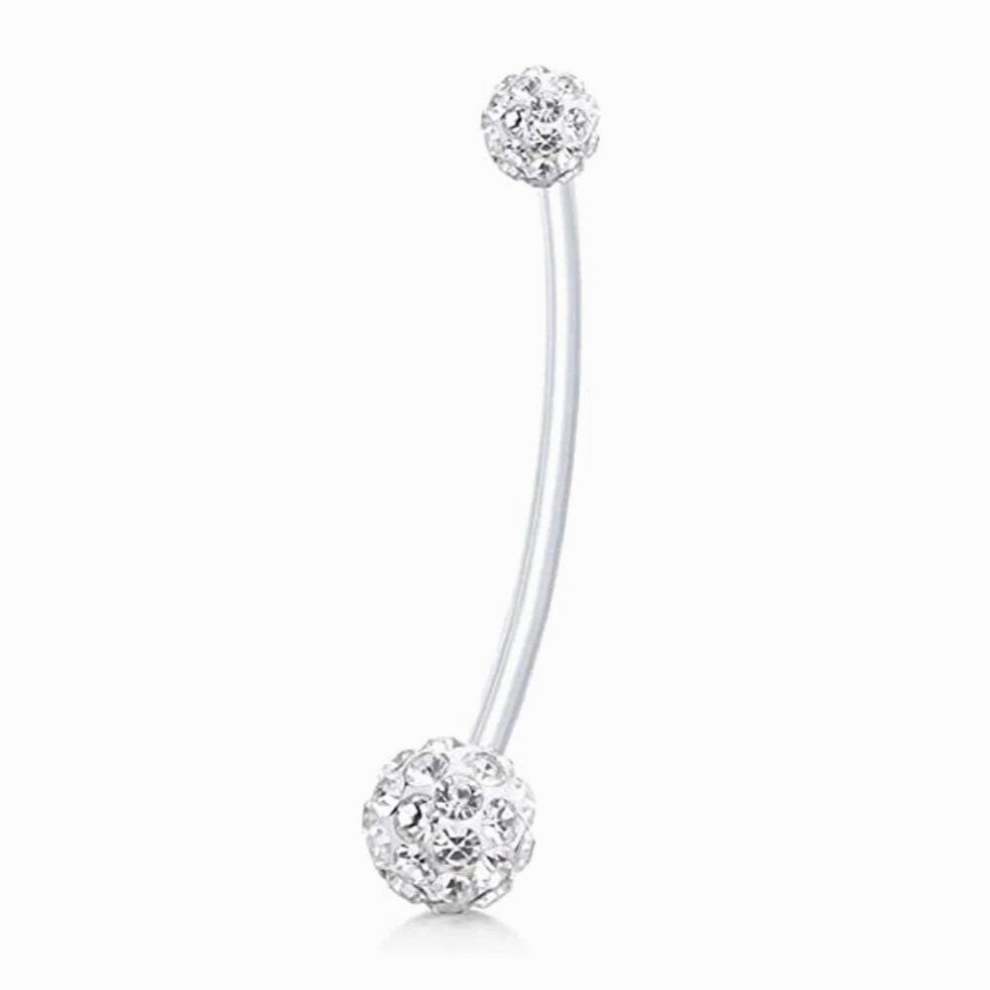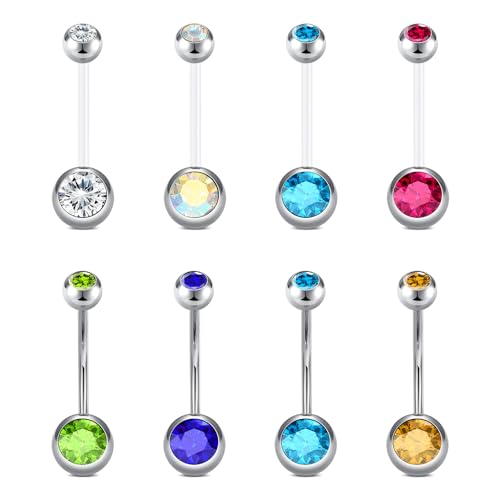 Belly Button Bars and Pregnancy Belly Bar 14G 8mm Belly Button Piercing Flexible Plastic Maternity Belly Bar Silver Surgical Steel Rhinestone Belly Piercing Jewelry