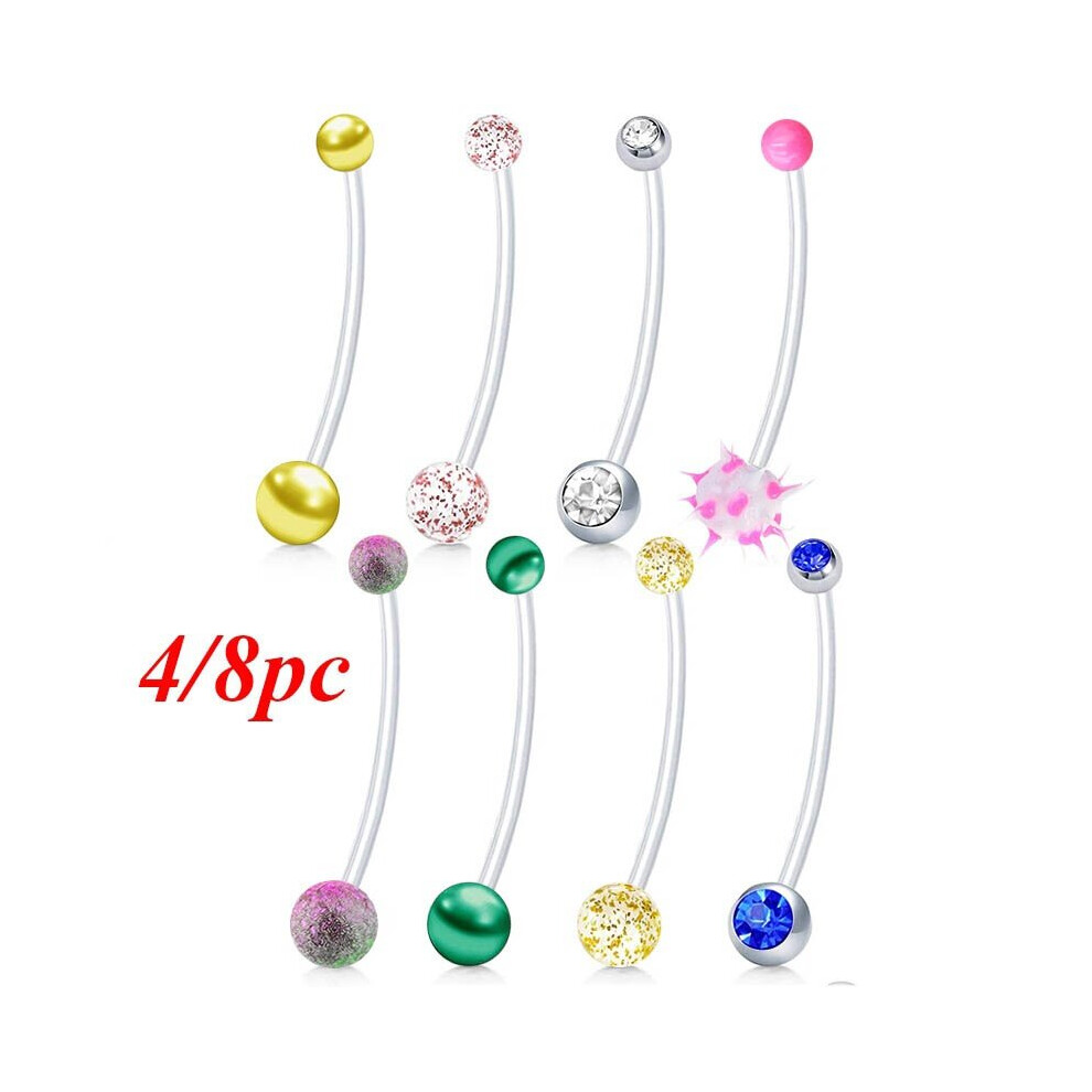 4/8PC Pregnancy Belly Button Rings Long Bar Clear Flexible Navel Stud for Women Crystal Belly Piercing Body Jewelry Retainer