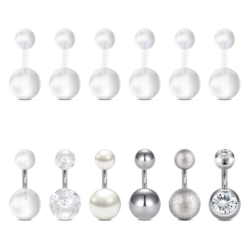 FECTAS Belly Button Bars 6mm Silver Surgical Steel and Clear Plastic Pregnancy Belly Bar Hypoallergenic Maternity Belly Ring Stainless Steel Short Long Belly Piercing Jewelry