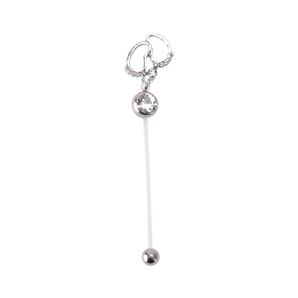 Belly Button Bars and Pregnancy Belly Bar 14G 38mm Belly Button Piercing Flexible Plastic Maternity Belly Bar Silver Surgical Steel Rhinestone Belly Piercing Jewelry
