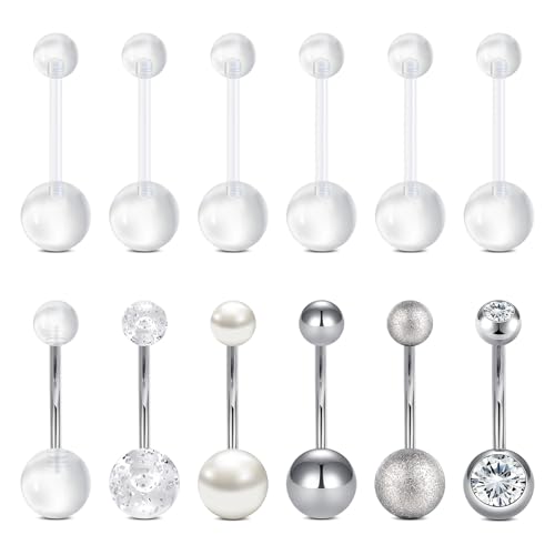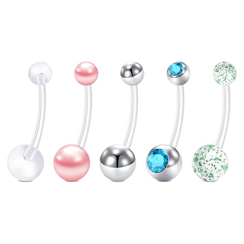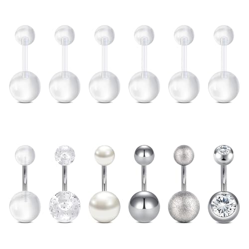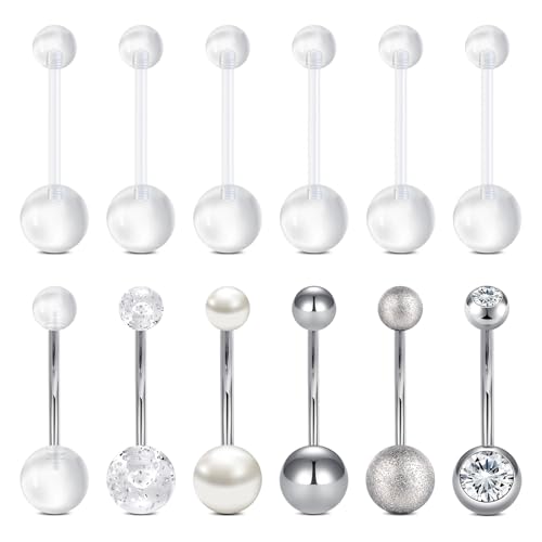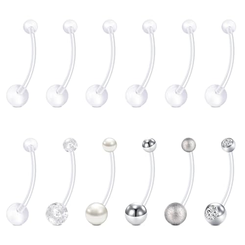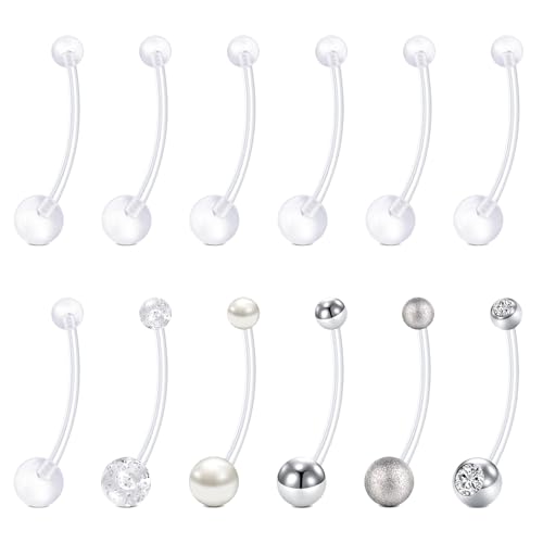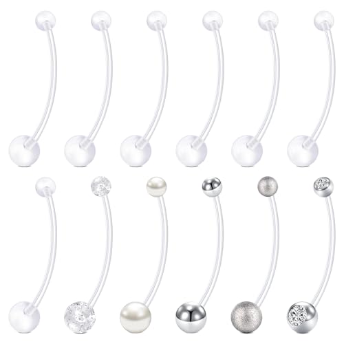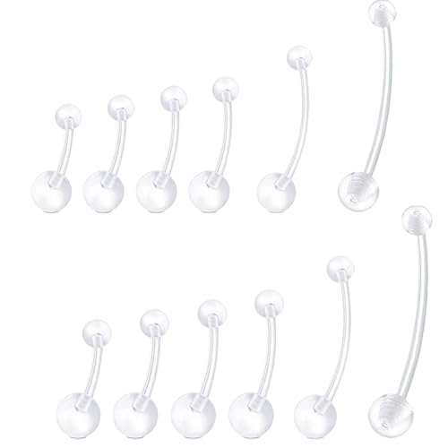 QttvbTna 14G Pregnancy Belly Bar Retainer,12 Pcs Flexible Bendable Clear Plastic Navel Piercing Balls, 1.6mm Long Belly Bar Belly Button Piercing for Pregnant Women