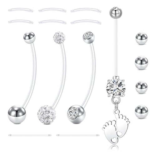 FECTAS Belly Button Bars 18mm Silver Surgical Steel and Clear Plastic Pregnancy Belly Bar Hypoallergenic Maternity Belly Ring Stainless Steel Short Long Belly Piercing Jewelry
