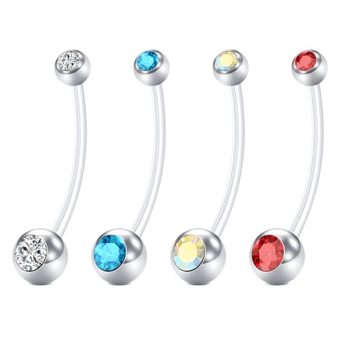 Belly Button Bars and Pregnancy Belly Bar 14G 12mm Belly Button Piercing Flexible Plastic Maternity Belly Bar Silver Surgical Steel Rhinestone Belly Piercing Jewelry