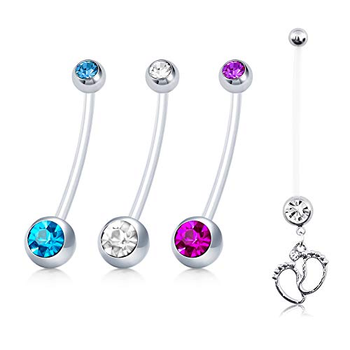 3X(Flexible Pregnancy Maternity Belly Navel Bar Body Piercing Baby Feet3245