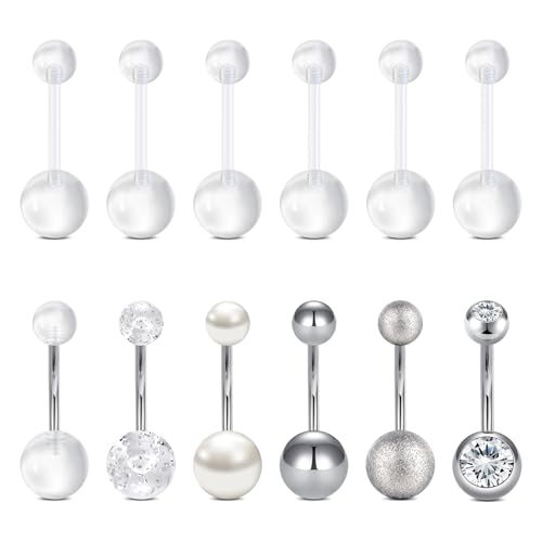 FECTAS Belly Button Bars 12mm Silver Surgical Steel and Clear Plastic Pregnancy Belly Bar Hypoallergenic Maternity Belly Ring Stainless Steel Short Long Belly Piercing Jewelry