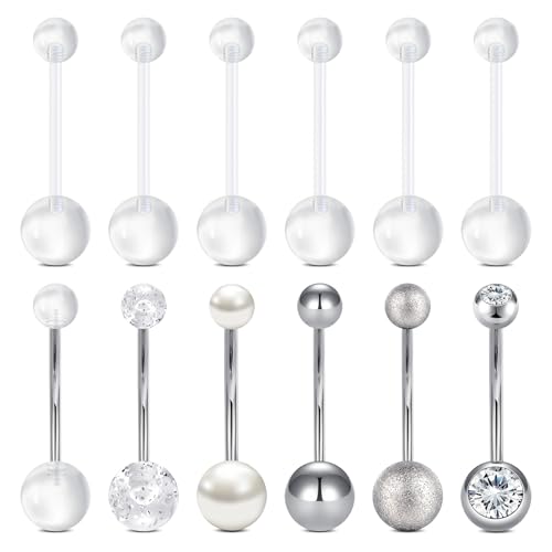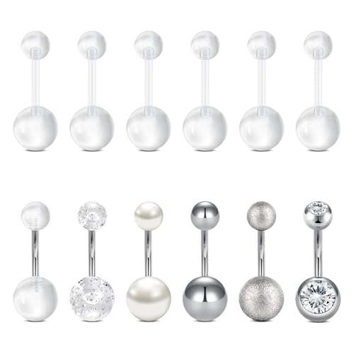 WillTen 14G Pregnancy Belly Bar, 12Pcs Maternity Belly Bars Plastic Belly Balls Long Belly Bar, Clear Bioflex Belly Button Bars Belly Button Piercing for Pregnant Women