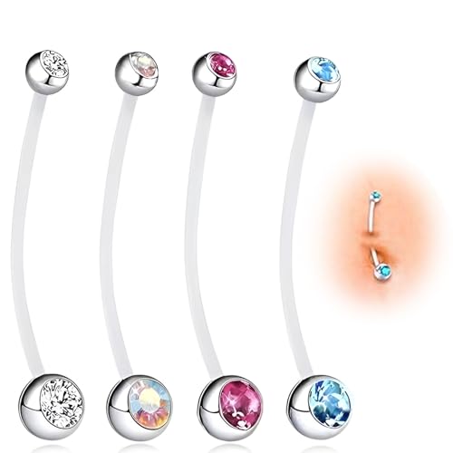Belly Button Bars and Pregnancy Belly Bar 14G 18mm Belly Button Piercing Flexible Plastic Maternity Belly Bar Silver Surgical Steel Rhinestone Belly Piercing Jewelry