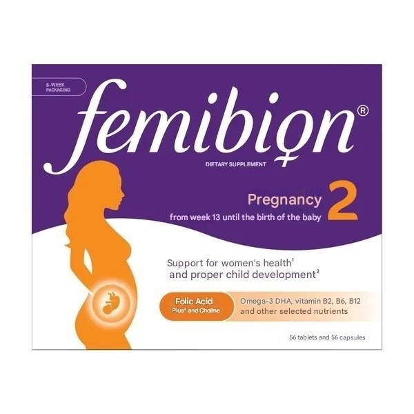 Femibion 2 Pregnancy From Week 13, Folic Acid Vitamins, 56 Tablets + 56 Capsules