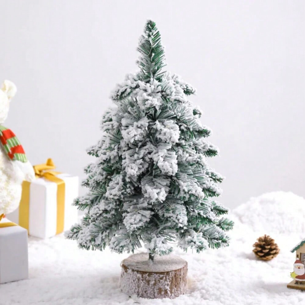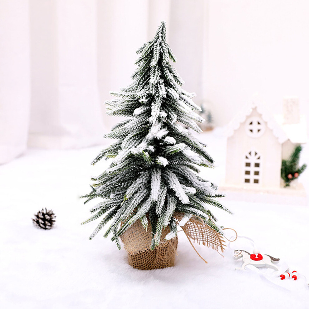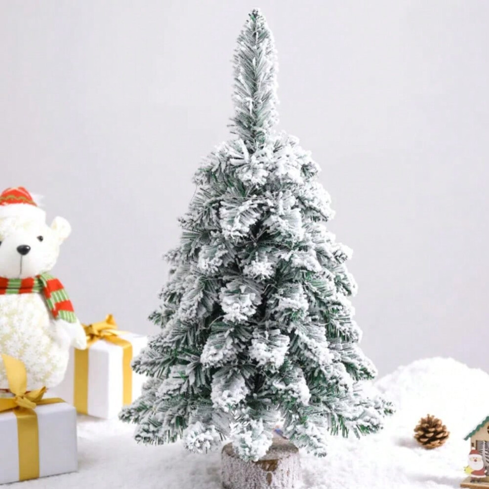 (48CM, Snow Tree) 48/60/75cm Pre-Lit Artificial Mini Christmas Tree Snow Flocked Artificial Pine Xmas Tree with LED Lights Desktop Christmas Trees