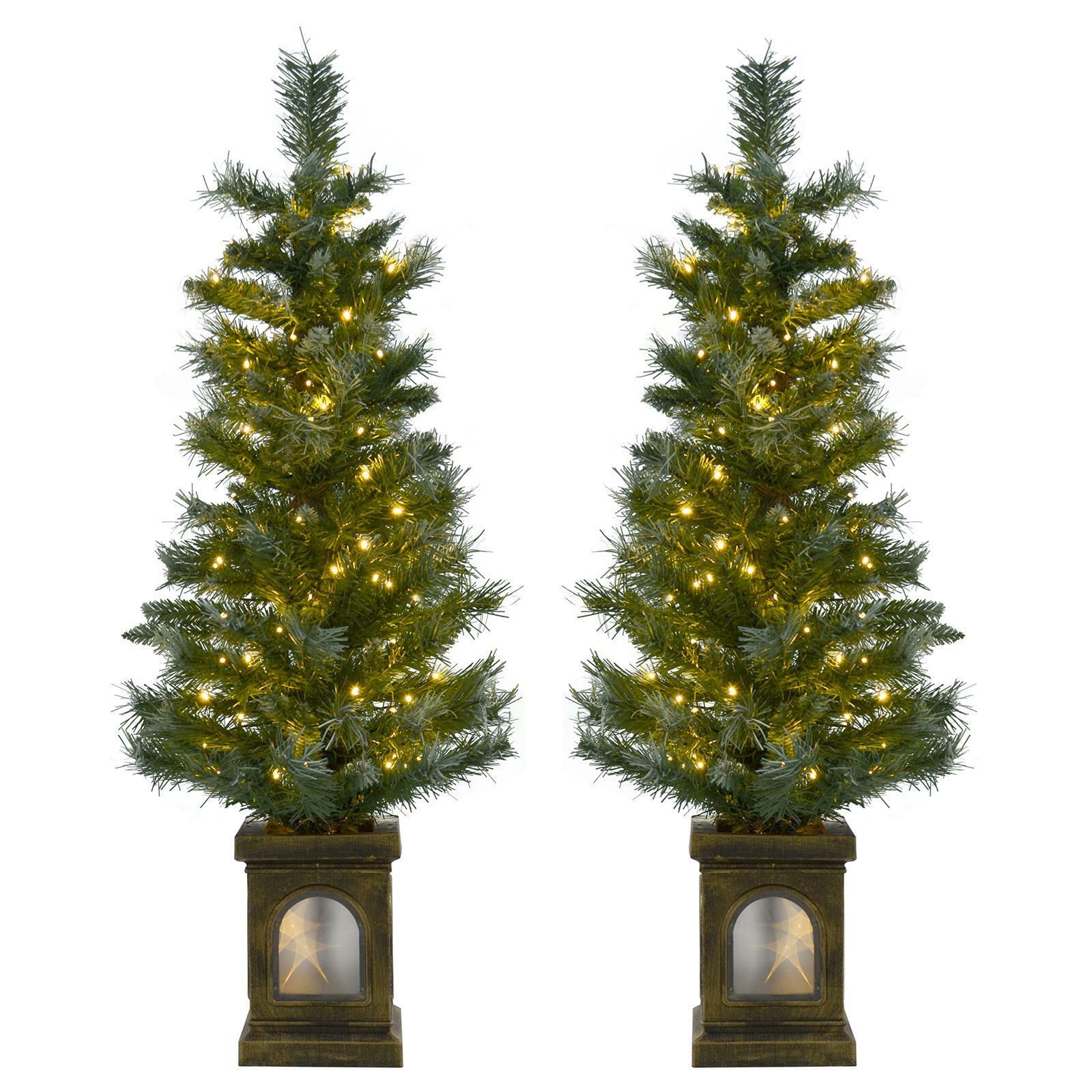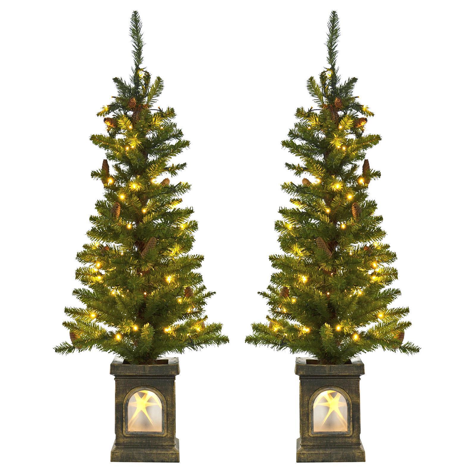 4ft Christmas Trees Set of 2 Pre-Lit 160 LED Lights Cones Pot Indoor Outdoor New