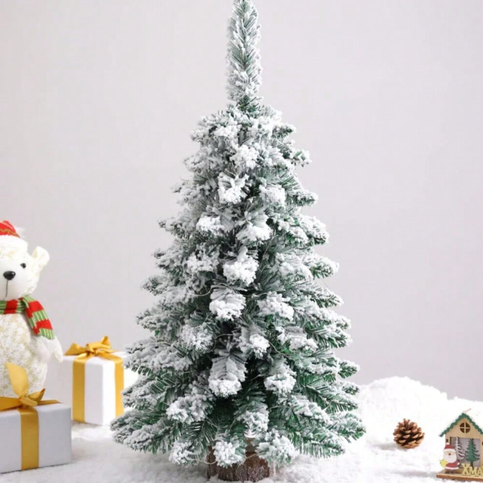 (75CM, Snow Tree) 48/60/75cm Pre-Lit Artificial Mini Christmas Tree Snow Flocked Artificial Pine Xmas Tree with LED Lights Desktop Christmas Trees