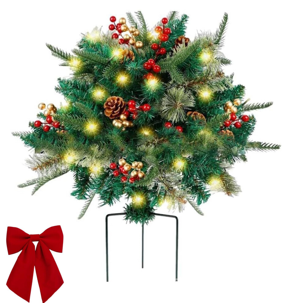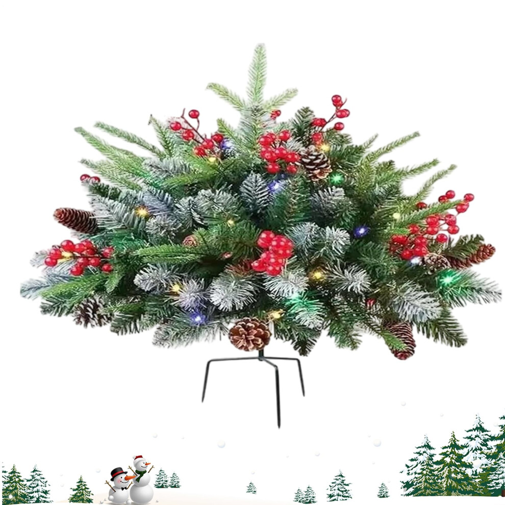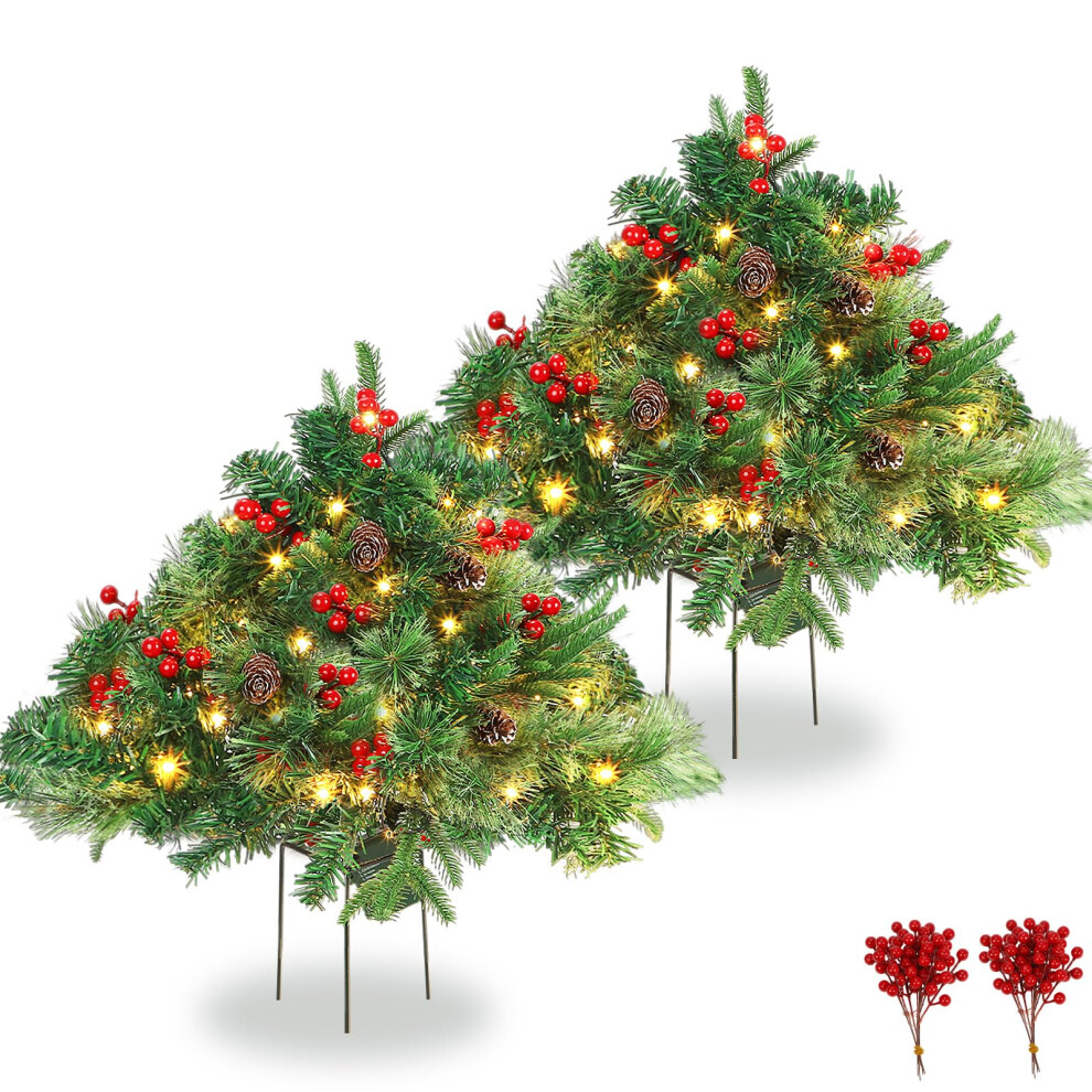 1/2 Pack PreLit Christmas Planter Fillers, Artificial Pine Trees with LEDs, Timer, Berries and Pinecones for Outdoor Holiday Decor