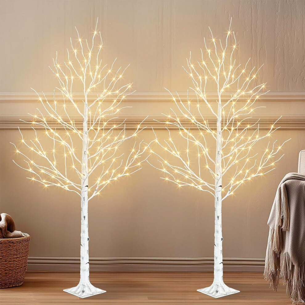 EAMBRITE Lighted Birch Tree Set, White Christmas Trees Indoor Outdoor Decorations, 5FT 6FT Prelit Artificial Tree with Timer & Light Dimmer, LED Twig