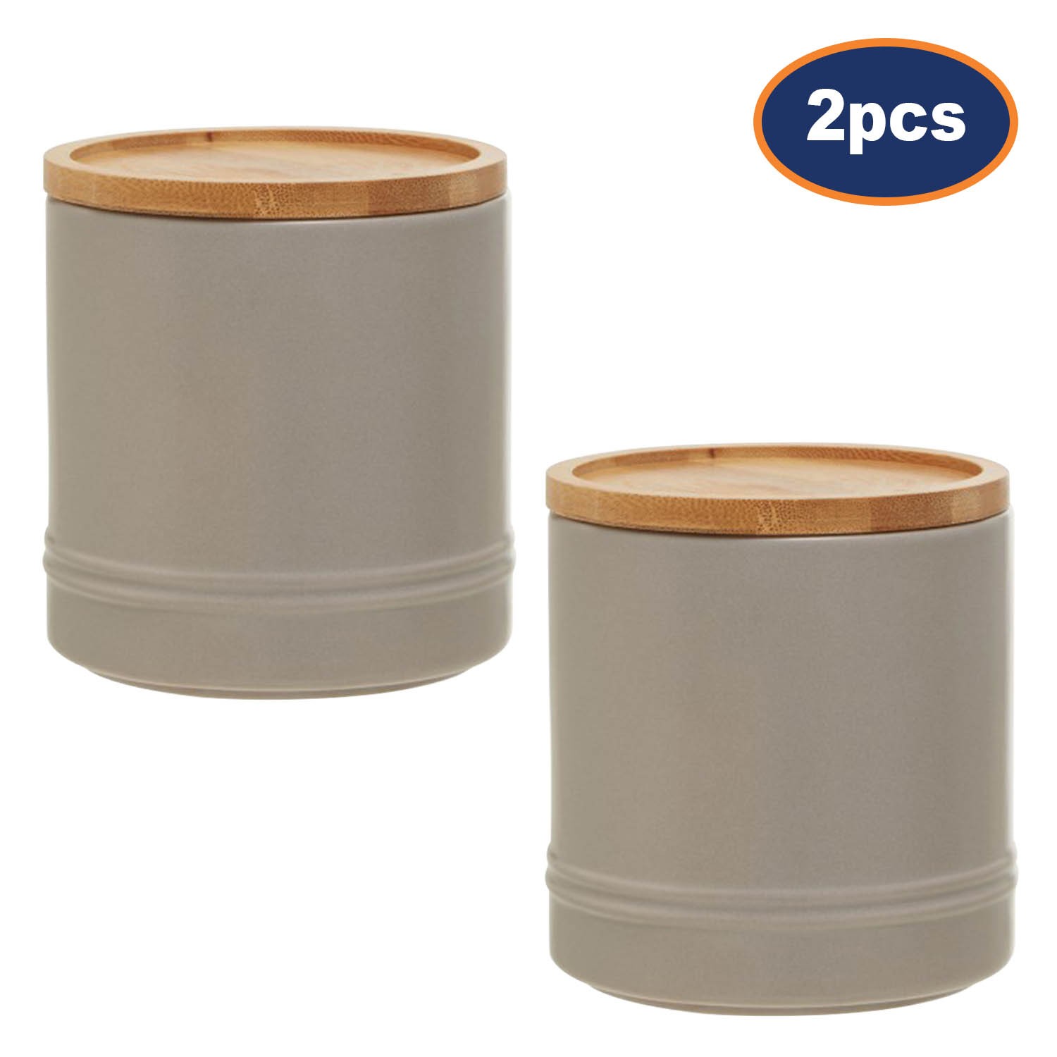 Pack of 2 720ml Grey Stoneware Kitchen Food Coffee Sugar Tea Storage Canisters
