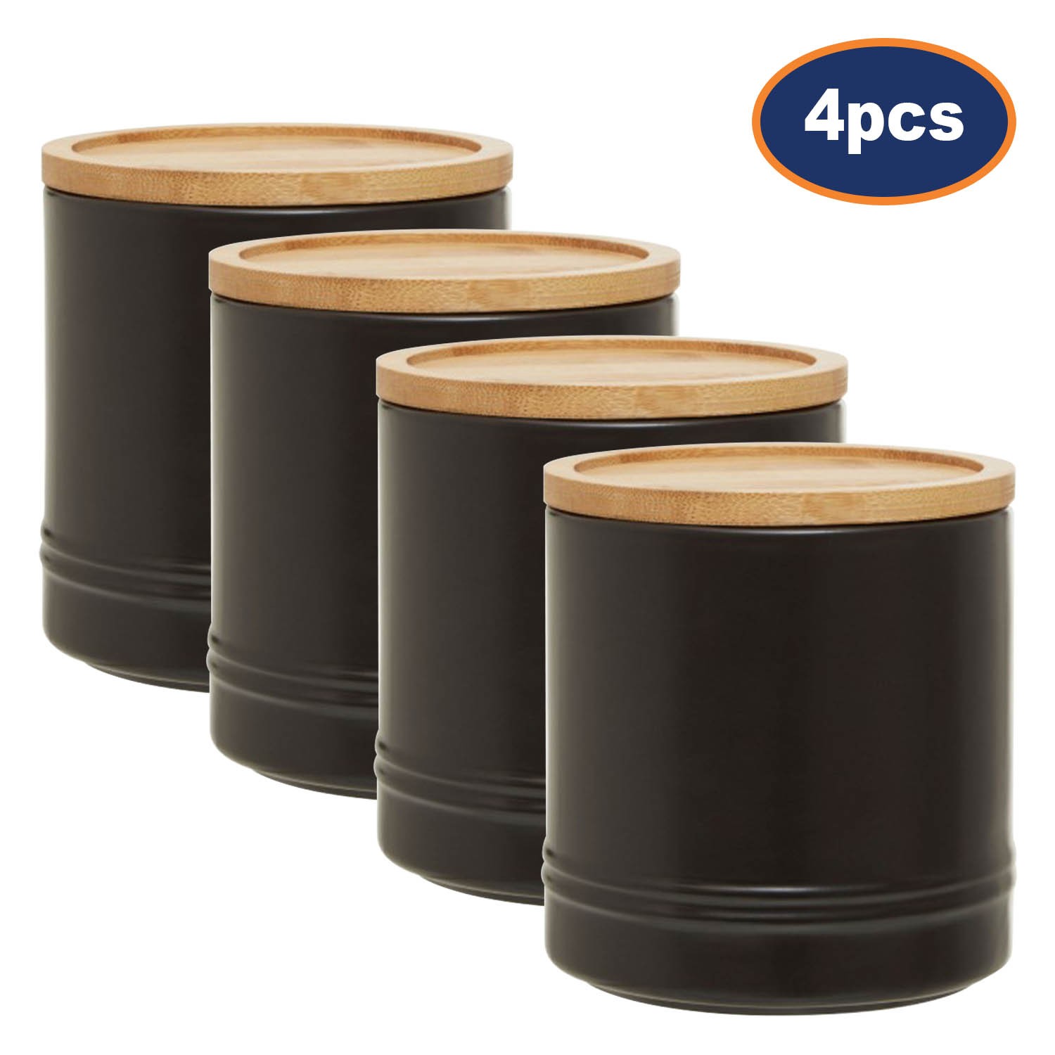Pack of 4 720ml Black Stoneware Kitchen Food Coffee Sugar Tea Storage Canisters