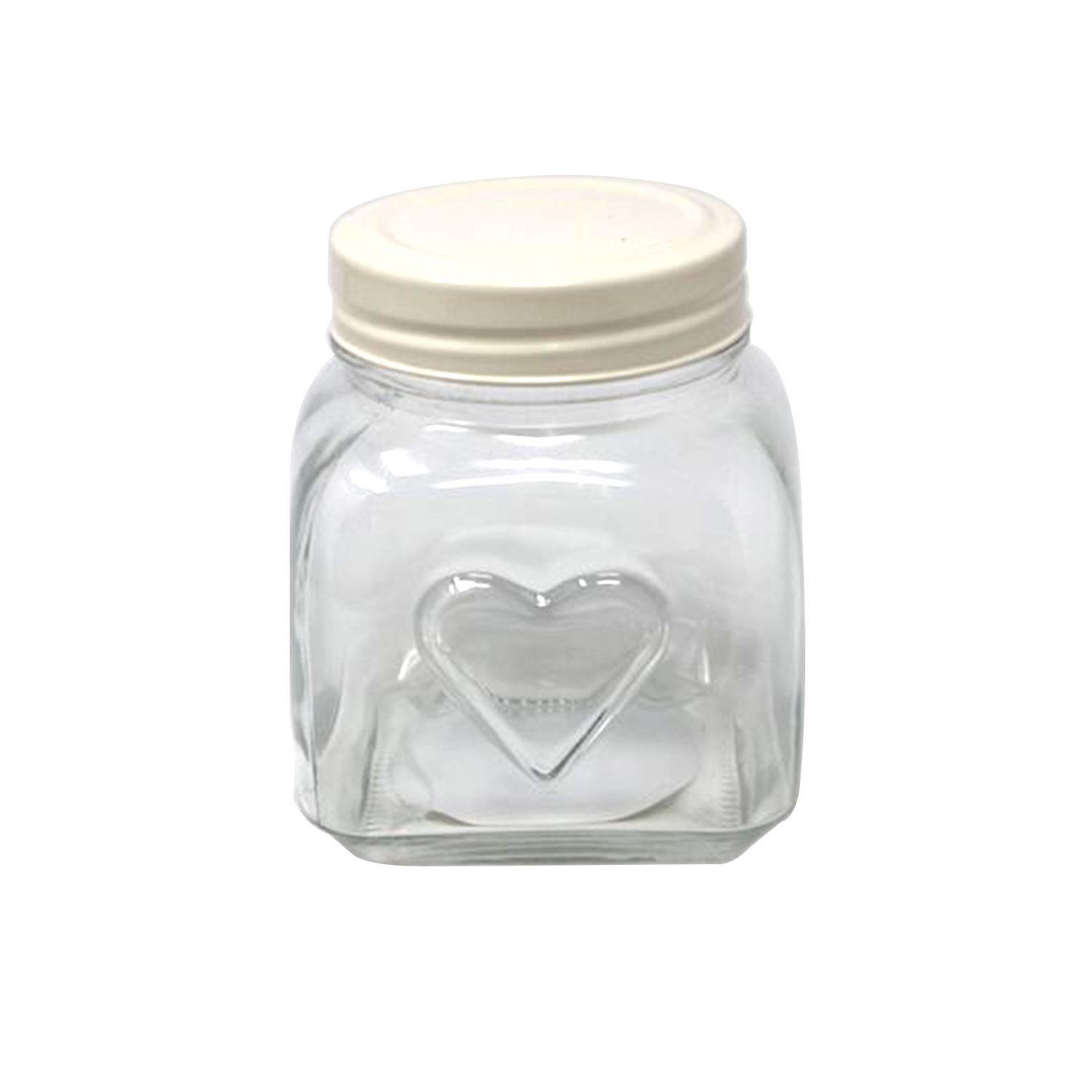 900ml Embossed Heart Glass Storage Jar Container Cream Screw Lid Food Canister