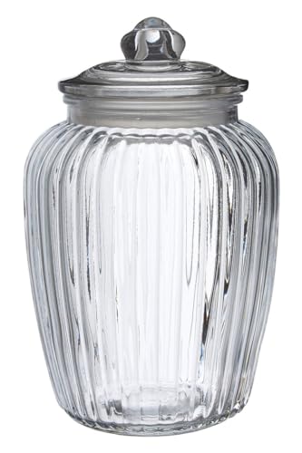 Premier Housewares Retro Design Glass Storage Jar 1050ml Clear Glass With Metal Lid Food Storage Container Transparent Container For Everyday Use 12 x 16 x 12 cm