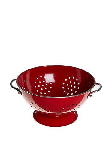 Premier Housewares Enamel Retro Colander, Stainless Steel Pasta Strainer - Red