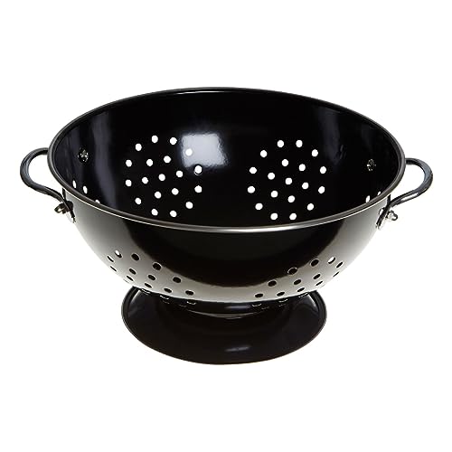 Premier Housewares 508557 Enamel Retro Colander Bowl Stainless Steel Pasta Strainer Black Rice strainer for Cooking Sives for Cooking Pasta Drainer, H13 x W23 x D23cm