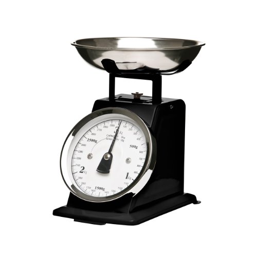Premier Housewares Retro Style Kitchen Scale with Stainless Steel Bowl, 3 kg - Matt Black, H16 x W17 x D14cm