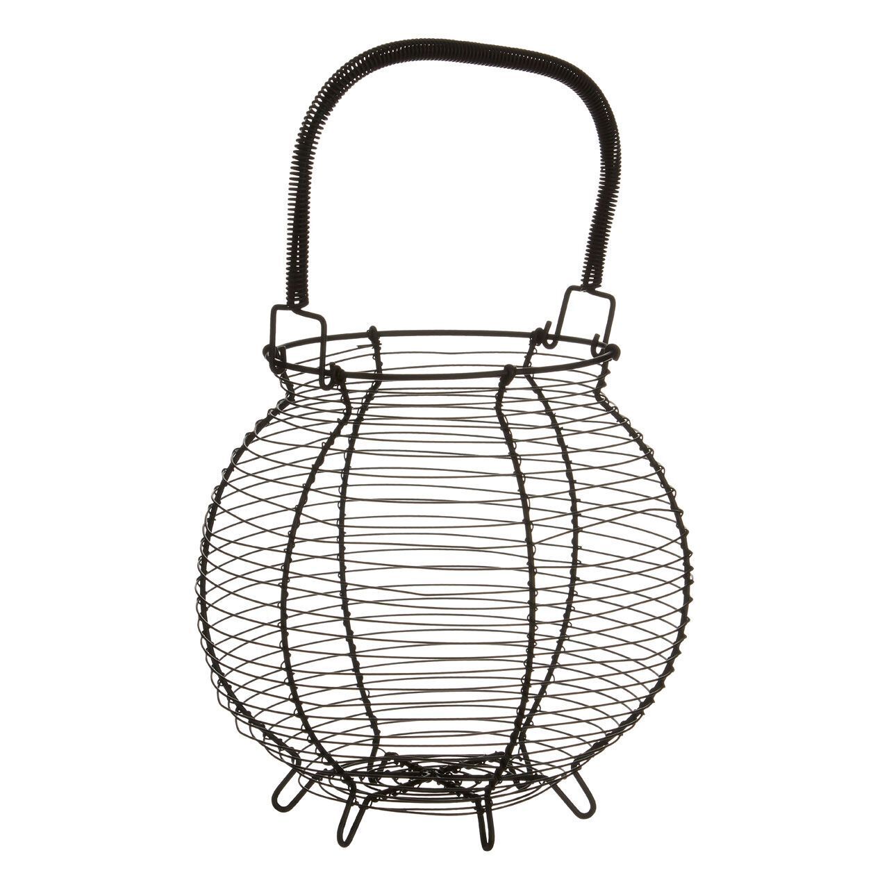Hygge Matte Black Modern Retro Egg Basket Spiral Metal Wire Style with Handle