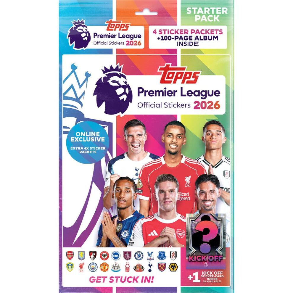 Topps Premier League Stickers 2026 - Starter Pack - Online Exclusive! (Contains a Bumper 96-Page Albums, 8 Sticker Packets, a Kick Off Sticker Card P