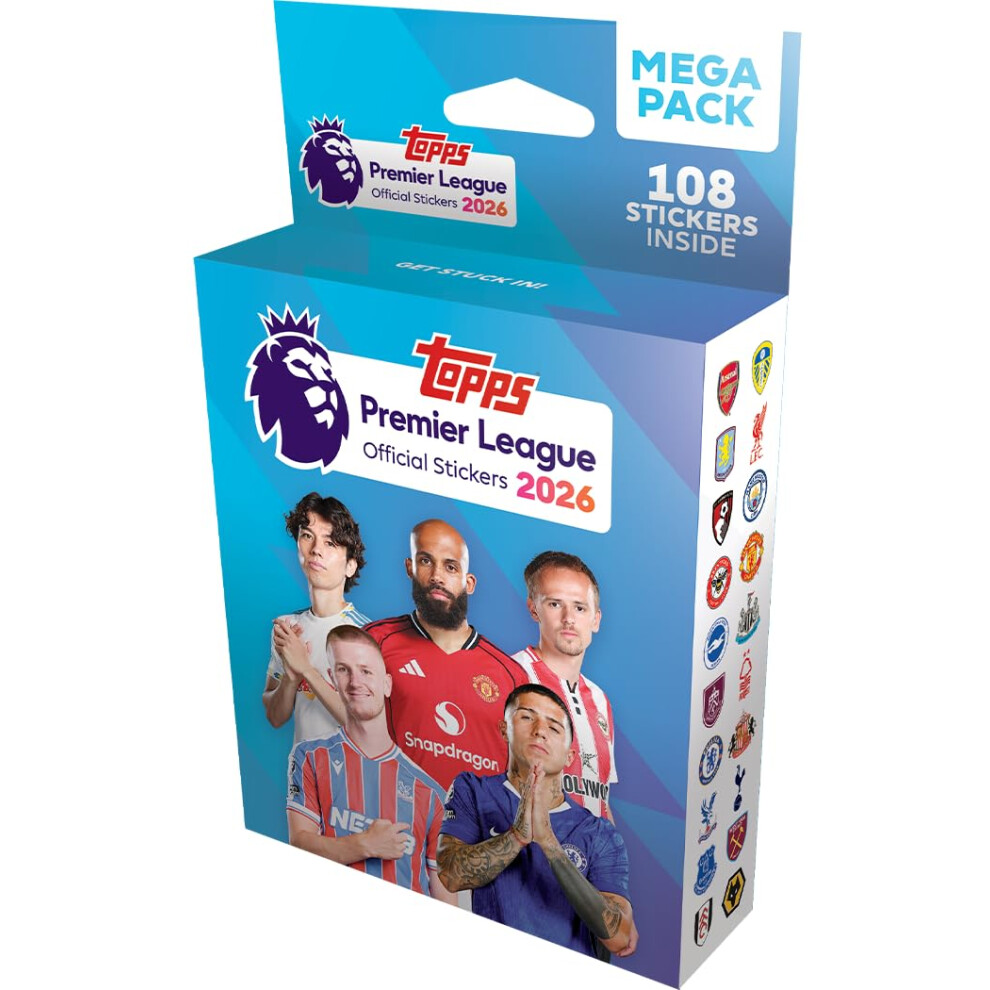 Topps Premier League Stickers 2026 - Mega Pack (Contains 18 Packets of Premier League Stickers (108 Stickers in Total).