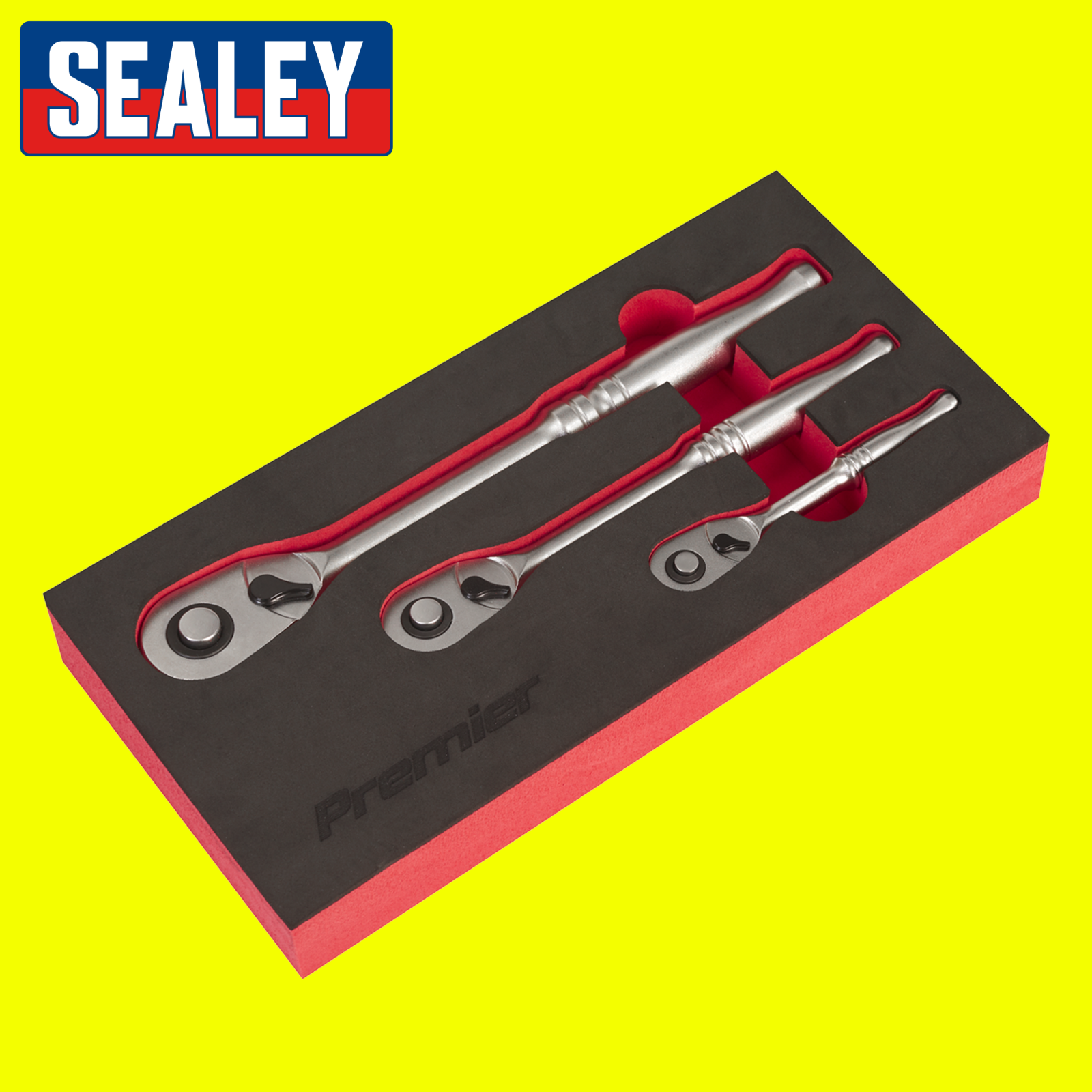 Sealey AK7933 3pc Ratchet Wrench Set - Flip Reverse - Premier Platinum Series