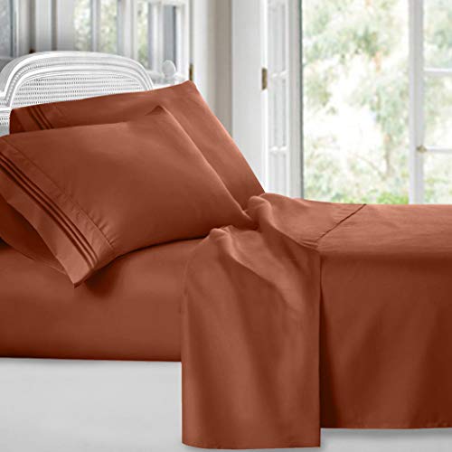 Clara Clark Bed Sheets, Premier 1800 Series 4 Piece Bed Sheet Set, Deep Pocket, Wrinkle, Fade, Stain Resistant, Luxury Soft Bedding Sheets & Pillowcases, King, Burnt Sienna