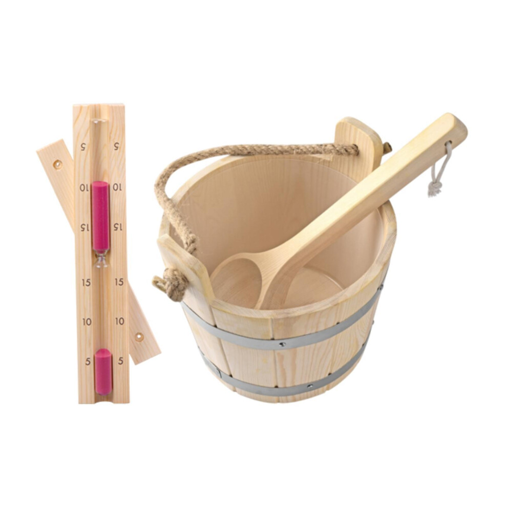 5L Capacity Sauna Bucket And Wooden Ladle Hourglass Timer Premium