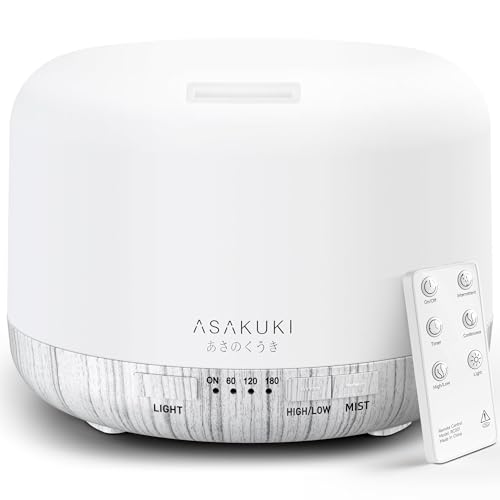 ASAKUKI 500ml Premium, Essential Oil Diffuser with Remote Control, 5 in 1 Ultrasonic Aromatherapy Fragrant Oil Humidifier Vaporizer, Timer and Auto-Off Switch White