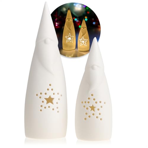 com-four® 2x LED Santa Claus with timer - ceramic decoration for Christmas - premium decorative stand with LED lighting (2 pieces - Santa Claus)