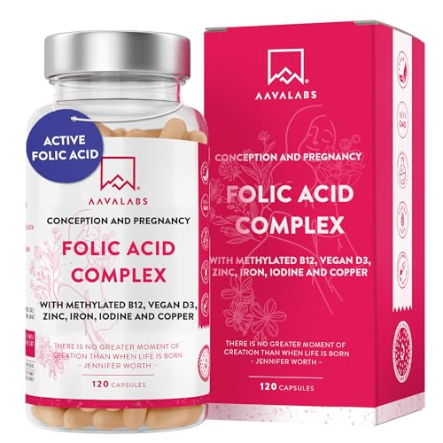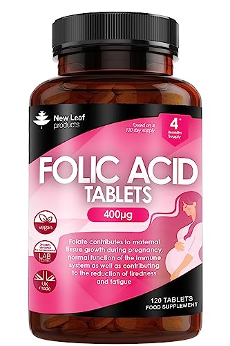 Folic Acid Pregnancy Tablets High Strength Folate Vitamins - 120 Tablets Folic Acid Vegan Prenatal Vitamins for Women 400mcg, Vitamin B9 Prenatal - Pregnancy Supplements - UK Made