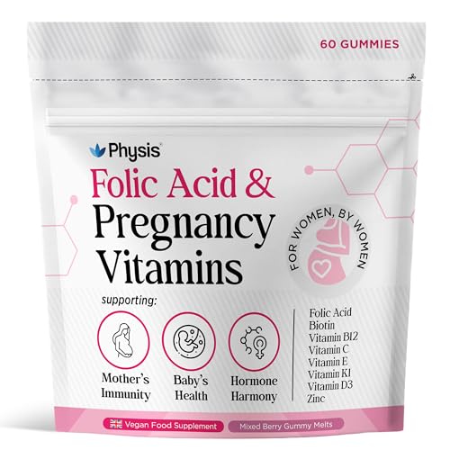 Physis Folic Acid & Pregnancy Vitamins | Prenatal Vitamins for Women | 60 Vegan Melt-in-Your-Mouth Mixed Berry Gummies | with Folic Acid, Vitamin D3, B12, Zinc, Iodine | UK-Made Pregnancy Supplements