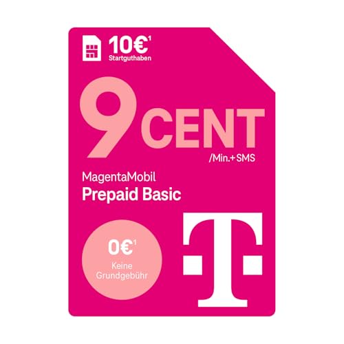 Telekom MagentaMobil Prepaid Basic SIM Card without Contract I 9 Ct per Min and SMS in all German Networks, EU Roaming I Dayflat for High Speed Surfing with LTE Max