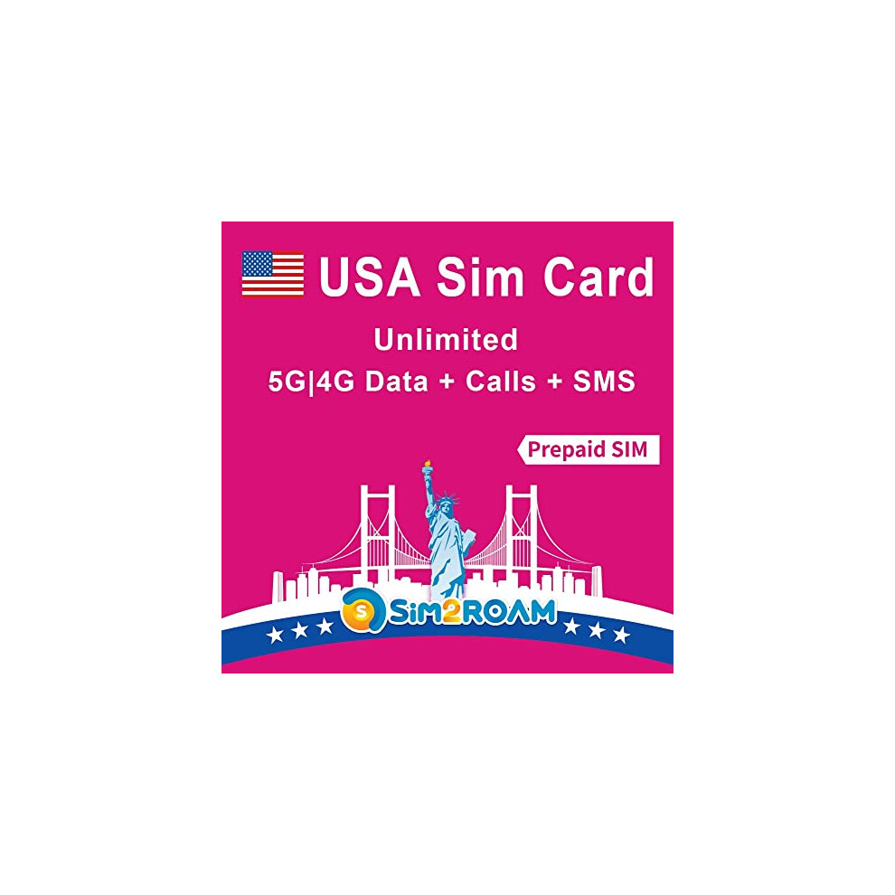 SIM2ROAM USA Prepaid SIM Card Unlimited 5G/4G LTE High-speed Internet Data in US (Hawaii included) Unlimited Calls and Texts (SMS) in United States R