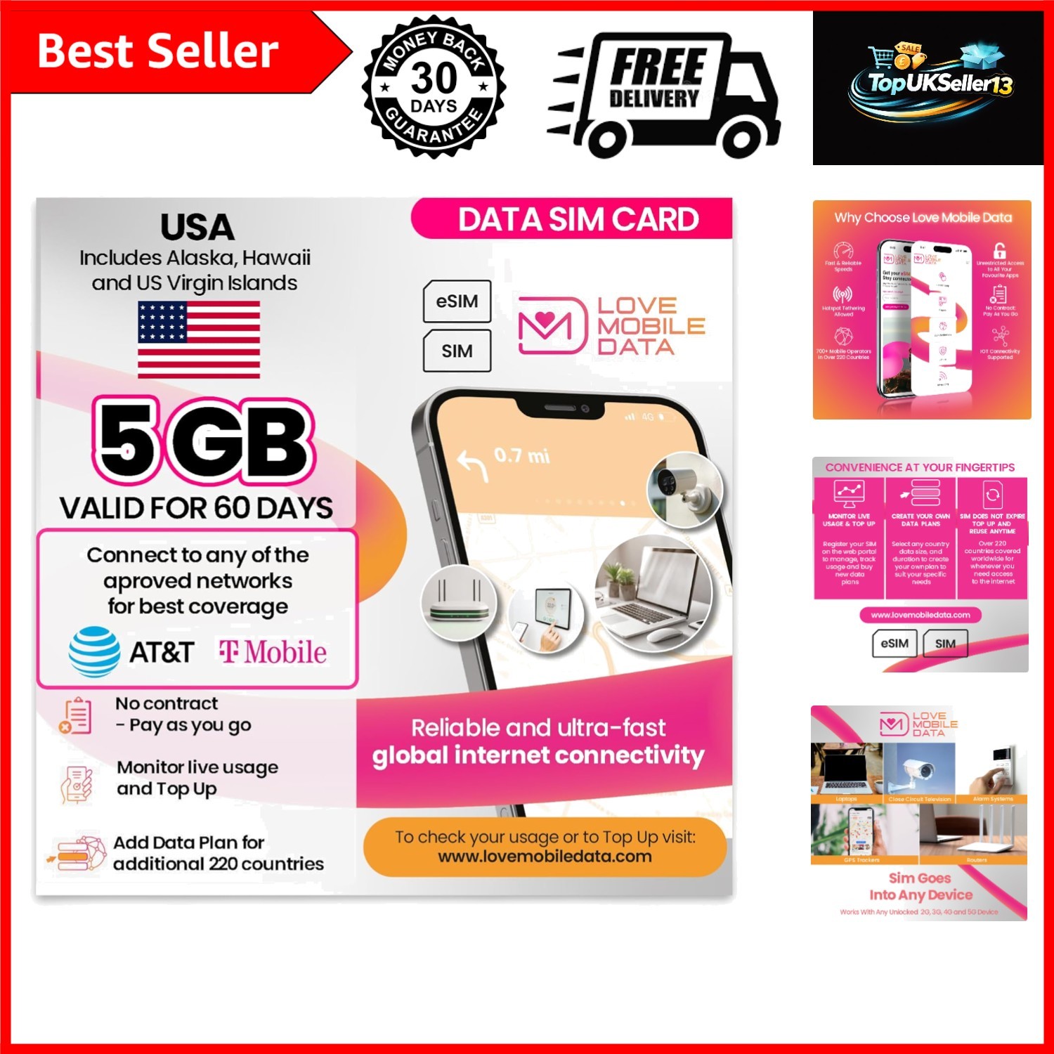5GB Multi-Network Prepaid SIM Card for Travelers: 4G/5G in the USA & UK