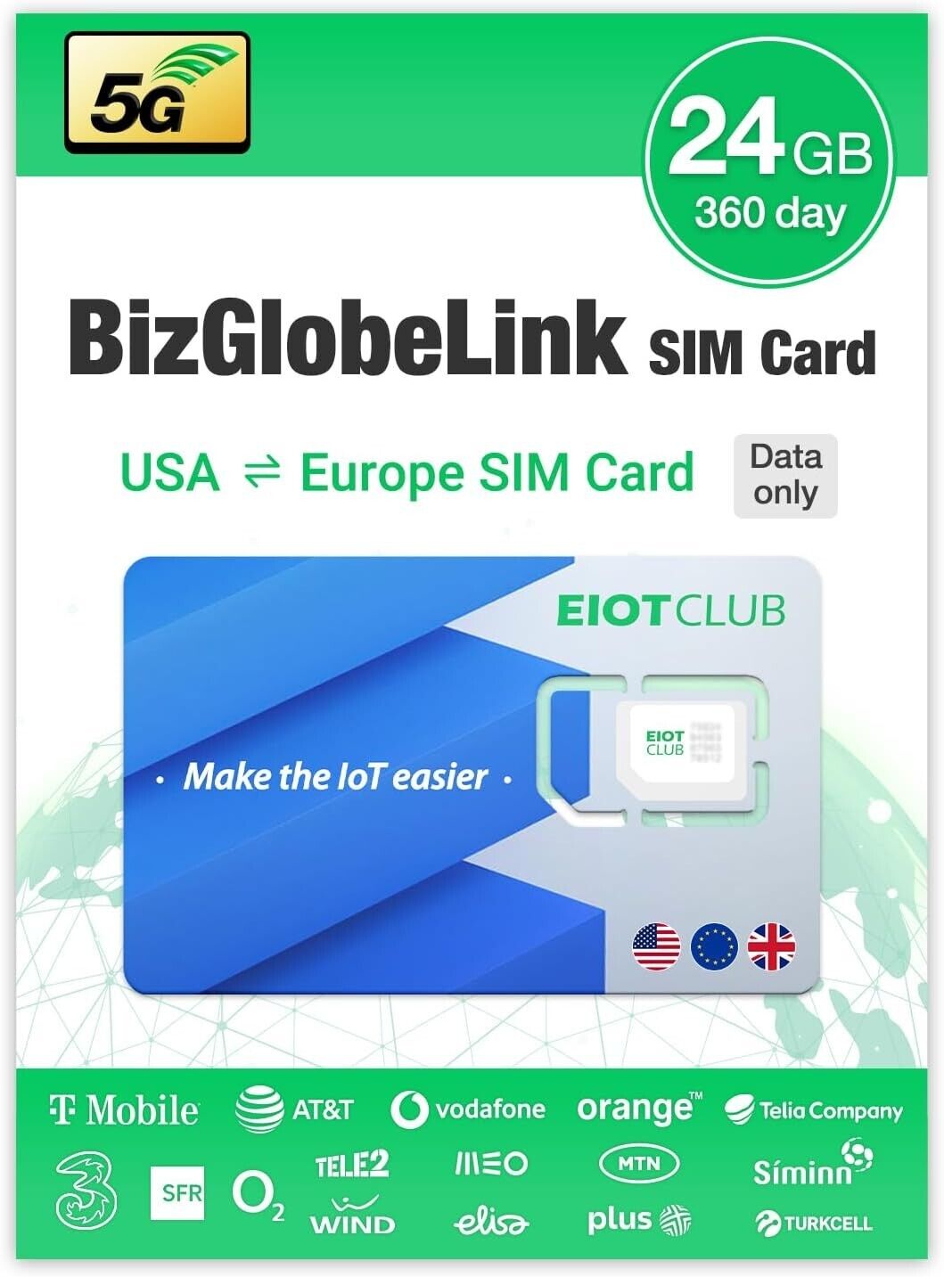 EIOTCLUB Biz Prepaid SIM Card for Travel (24GB-360Days | USA)