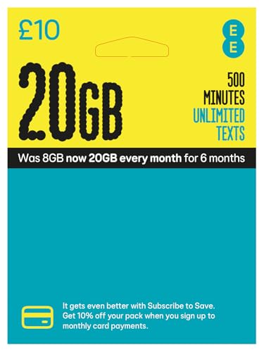 EE Pay As You Go SIM Card UK PREPAID PAYG £10 Bundle 8GB + (12GB FREE DATA every month for 6 months with regular top ups (Promotion request deadline of 31.01.2026)