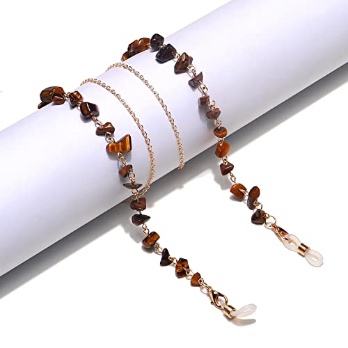AAIXXIZAO Glasses Chains Lanyards Fashion Chain Natural Tiger Eye Stone Not Easy To Fade Handmade Eyeglass Chain Presbyopia Anti Loss Chain Gold