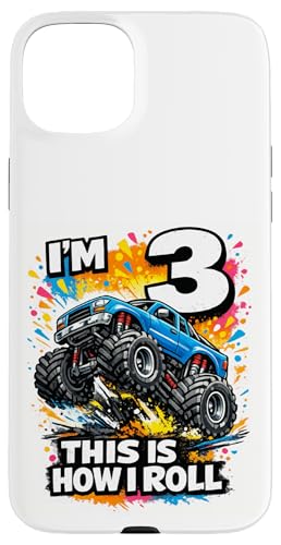 3 Year Old 3rd Birthday Boy kids Blue Monster Truck Car Case for iPhone 15 Plus