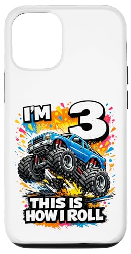 3 Year Old 3rd Birthday Boy kids Blue Monster Truck Car Case for iPhone 12/12 Pro
