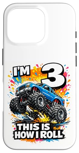 3 Year Old 3rd Birthday Boy kids Blue Monster Truck Car Case for iPhone 16 Pro