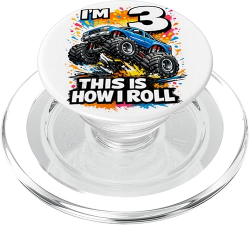 Birthday Monster Truck Boys 3 Year Old Monster Truck Boy PopSockets PopGrip for MagSafe